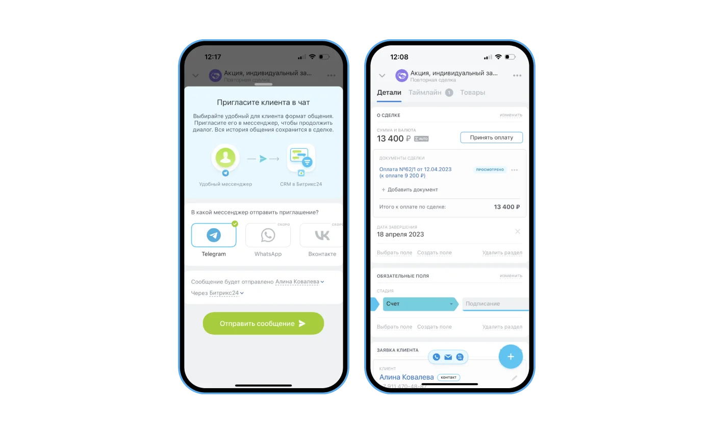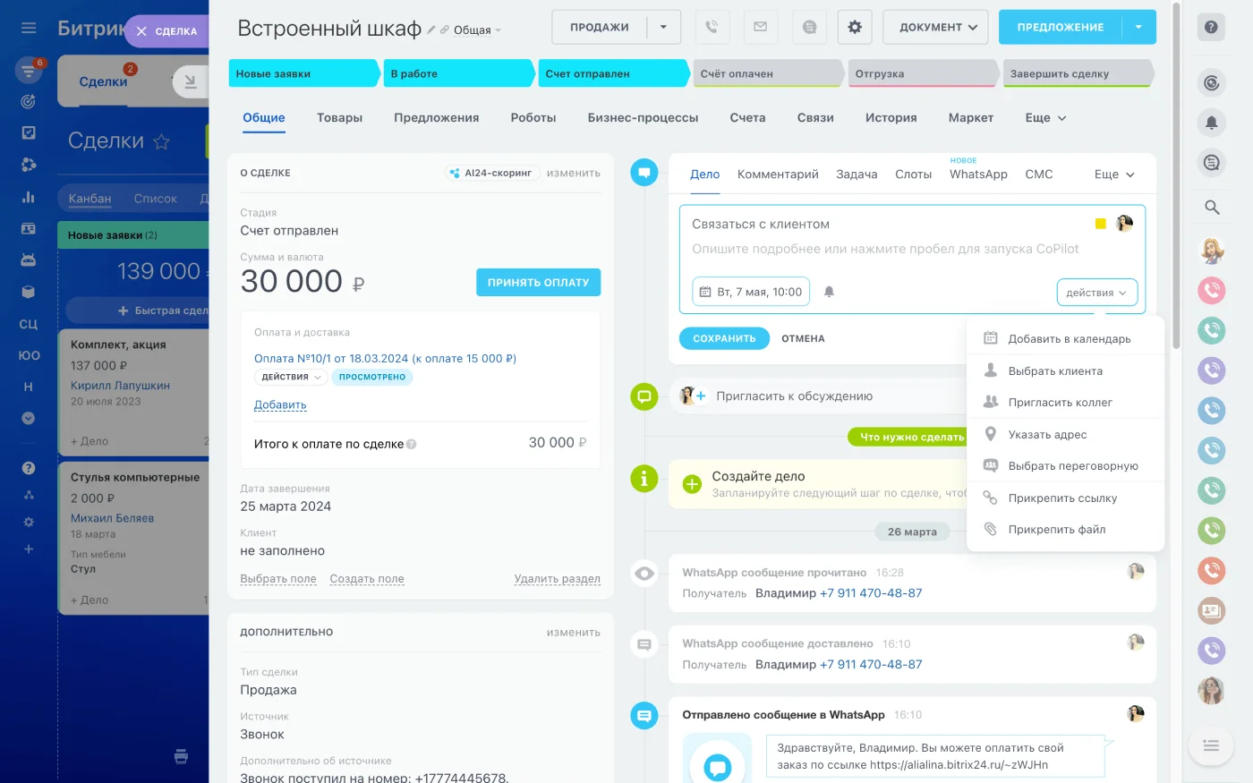 В карточке счета вы увидите, что клиент открыл ссылку и оплатил выставленный счет. А роботы и триггеры помогут автоматизировать весь процесс.