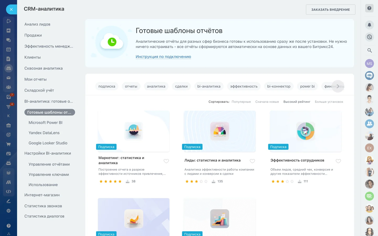 Анализируйте данные, которые накапливаются в Битрикс24, с помощью Google DataStudio или Microsoft PowerBI.